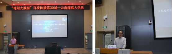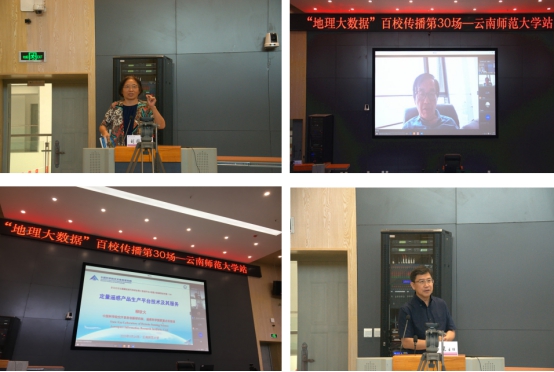 苏州大学建筑学院余亮教授和中国科学院遥感与数字地球研究所柳钦火研究员则通过线上平台带来了分别以《中国传统村落及居民数据解读》和《定量遥感产品生产平台技术及服务》为主题的两个报告。余亮教授主要围绕如何通过大数据来分析解读传统村落的分布及在居民居住情况,并对该研究工作进行了展望;柳钦火研究员从定量遥感产品生产平台技术架构、定量遥感服务平台运营模式等方面进行了详细的介绍。我校地理学部主任杨昆教授报告题目为《澜湄国家命运共同体大数据平台构建》,杨昆教授针对我校目前正在开展的澜沧江——湄公河流域国家大数据平台建设的研究进展以及今后拟开展的工作设想做了交流分享。