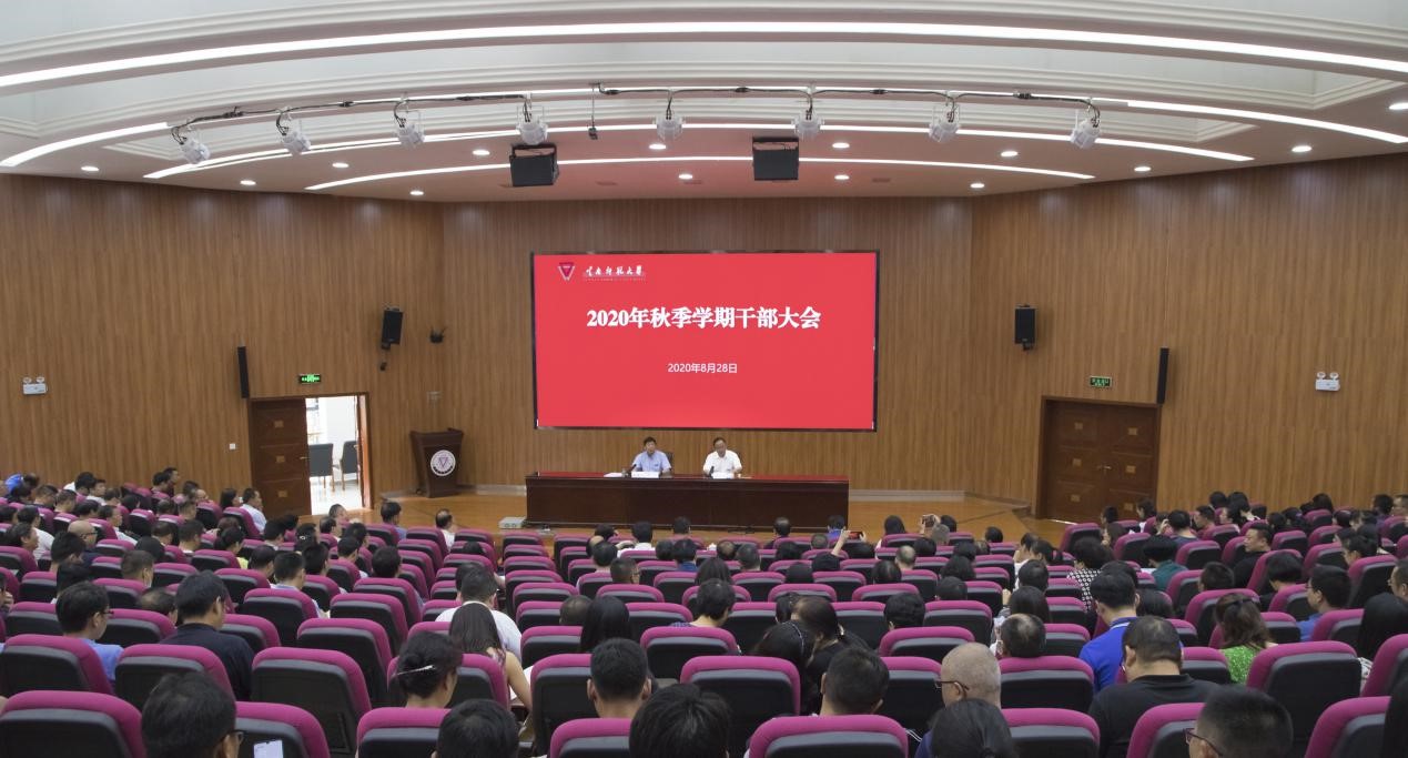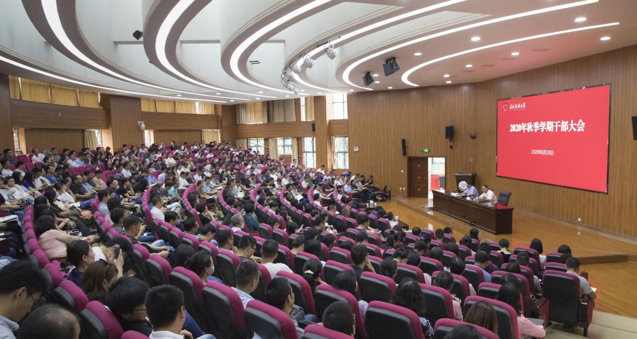 8月28日下午,我校2020年秋季学期干部大会在呈贡主校区汇学2栋101报告厅召开。学校全体校领导,其他省管干部,近三年离退休校领导,全校副处级及以上实职干部,各党政管理机构、党群部门、直属单位、教辅单位副科级及以上实职干部,省部级教学科研平台负责人,省党代会代表、人大代表、政协委员,各民主党派基层负责人,离退休党总支书记等参加会议。会议由校党委书记饶卫主持。