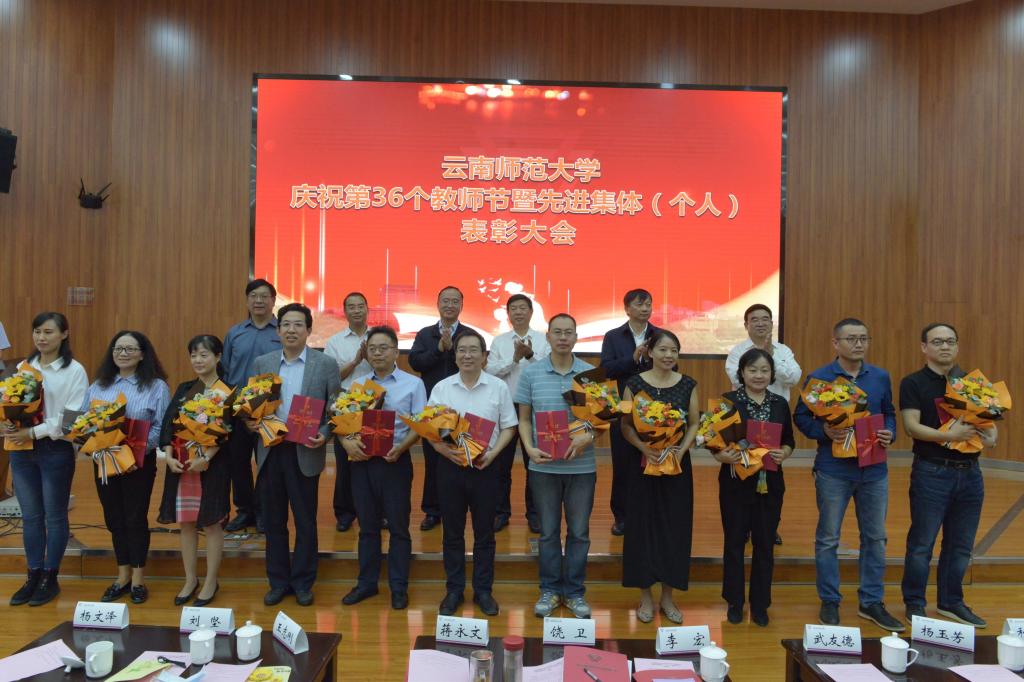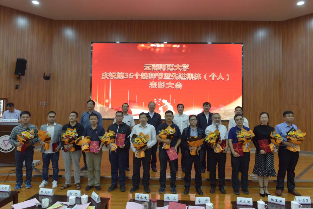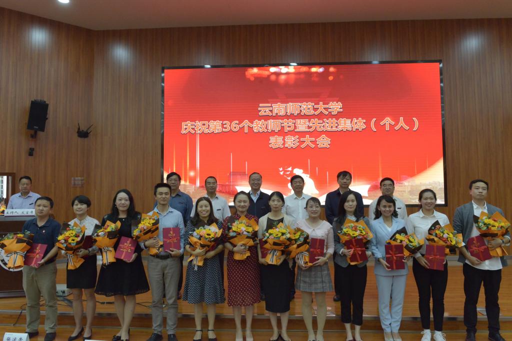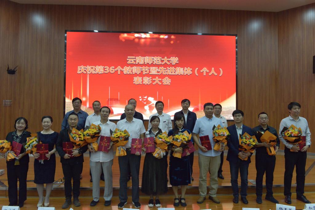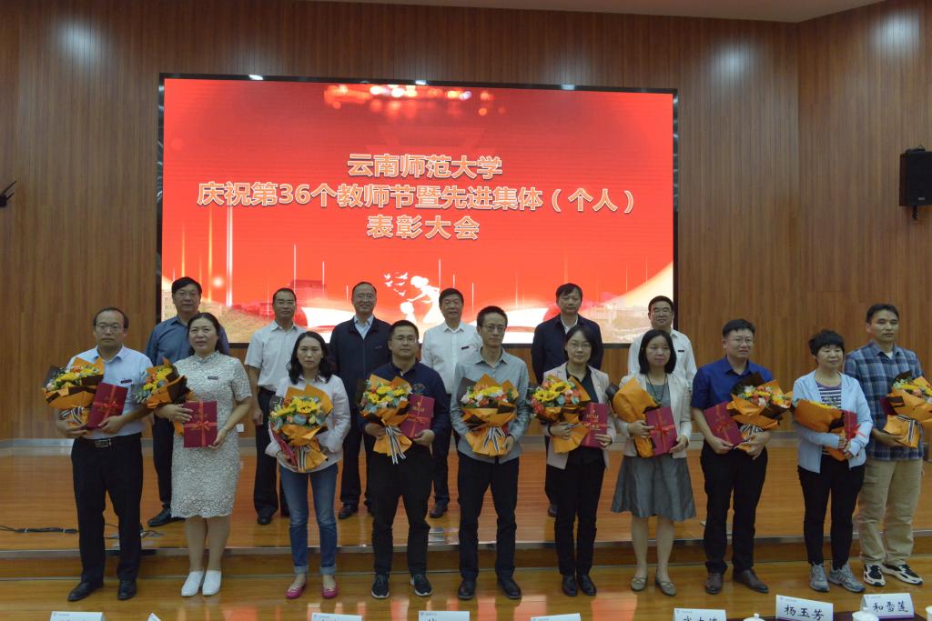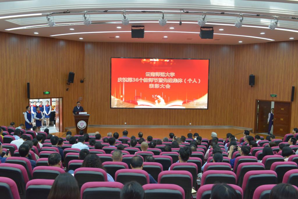 在第36个教师节到来之际,365英国上市官网庆祝第36个教师节暨先进集体(个人)表彰大会在呈贡主校区汇学楼报告厅举行。校领导班子成员,其他省管干部,高层次人才代表,各学院(学部)、各部门教师代表,扶贫一线教师代表,附属中小学及独立学院教师代表,离退休教师代表,各民主党派代表,万名校长培训班学员代表,2019-2020年度受表彰的先进集体(个人)代表,学生代表等200余人参加了大会。大会由安学斌副校长主持。