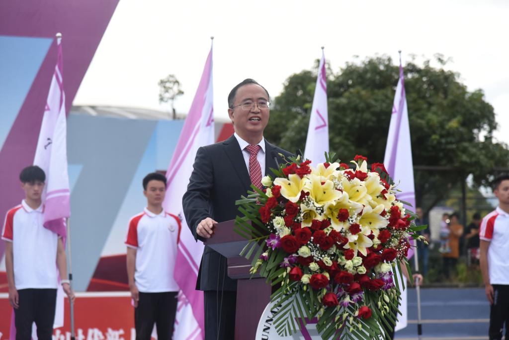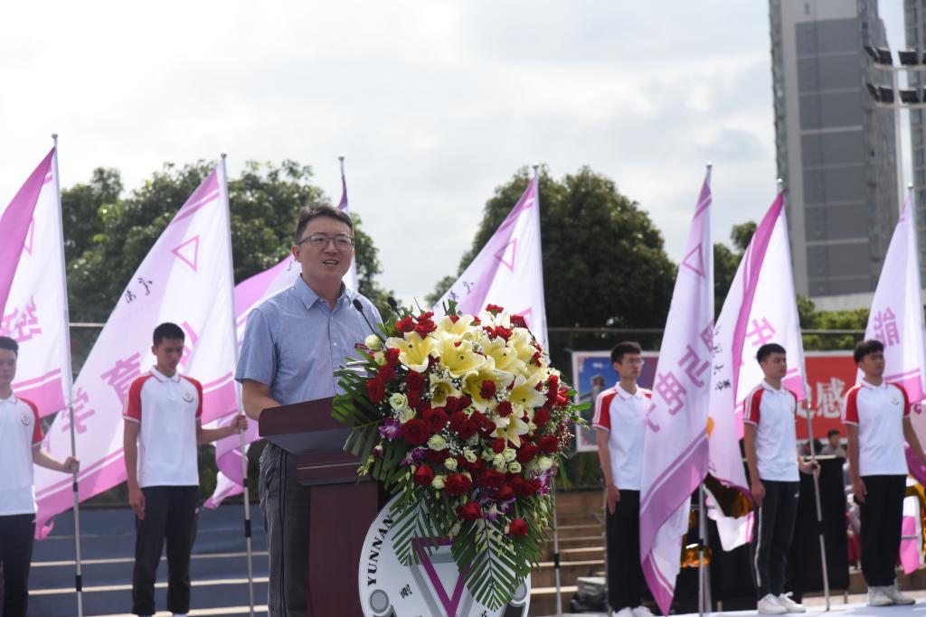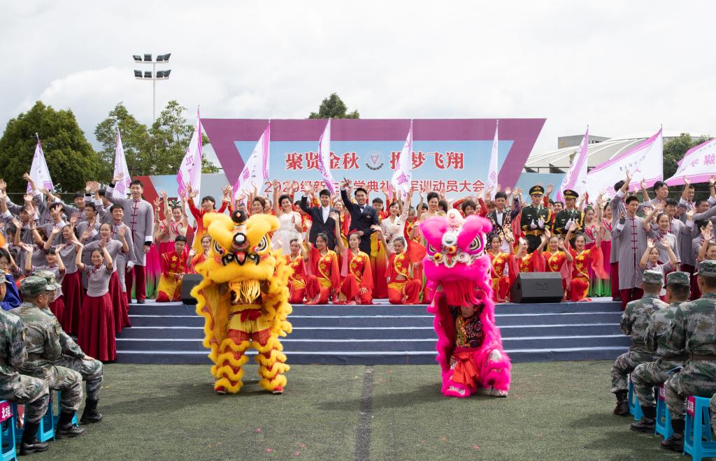 蒋永文校长首先致辞。蒋校长回顾了西南联大的光辉历史,并结合习近平总书记今年年初考察我校西南联大旧址时的重要指示精神,对“天降大任,注定不凡”的2020级新生提出了三点希望:一是希望同学们坚实涵养家国情怀。作为社会主义的建设者和接班人,作为国家的希望和栋梁,需要认真思考自己的理想和目标,把小我融入大我,主动关心家国命运、时代变迁,主动承担起报效祖国的人生使命和社会责任。二是希望同学们坚定探索人生意义。要生活上学会独立,尽快找准定位、转换角色,积极适应大学的学习和生活;心理上学会独立,培养独立人格,保持积极乐观的阳光心态、养成良好的心理调节能力;思想上学会独立,明辨是非、自信自律,在走向自强独立的过程中,增长力量、完善人格、脚踏实地、逐梦前行。三是希望同学们坚决练就过硬本领。要把学习作为终身兴趣和习惯,喜欢学习、勤于学习、善于学习,学有所思、学有所悟、学有所成。同时,蒋校长希望全体新生在接下来的军训中端正态度、严守纪律、刻苦训练,以饱满的精神、昂扬的斗志投入到军训中,用青春和汗水铸就坚强的意志品格。