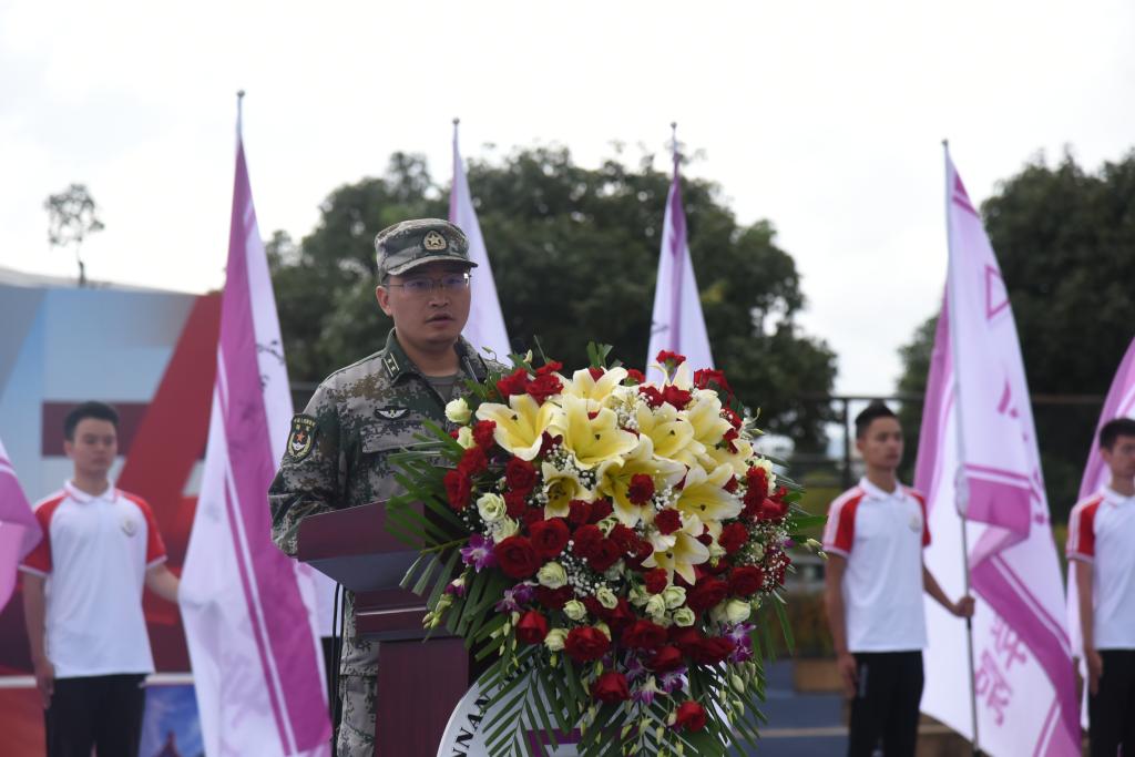 西藏部队退役军人、数学学院2017级张睿贤同学作为在校生代表发言。她饱含深情地分享了大一结束时自己携笔从戎,远赴西藏,在国境线和世界屋脊上保家卫国的参军经历。她希望学弟学妹们面对军训,要克服困难,严格要求自己,学习军人良好的意志和作风,运用在今后的学习生活中,做志存高远、有历史责任感的时代新人。