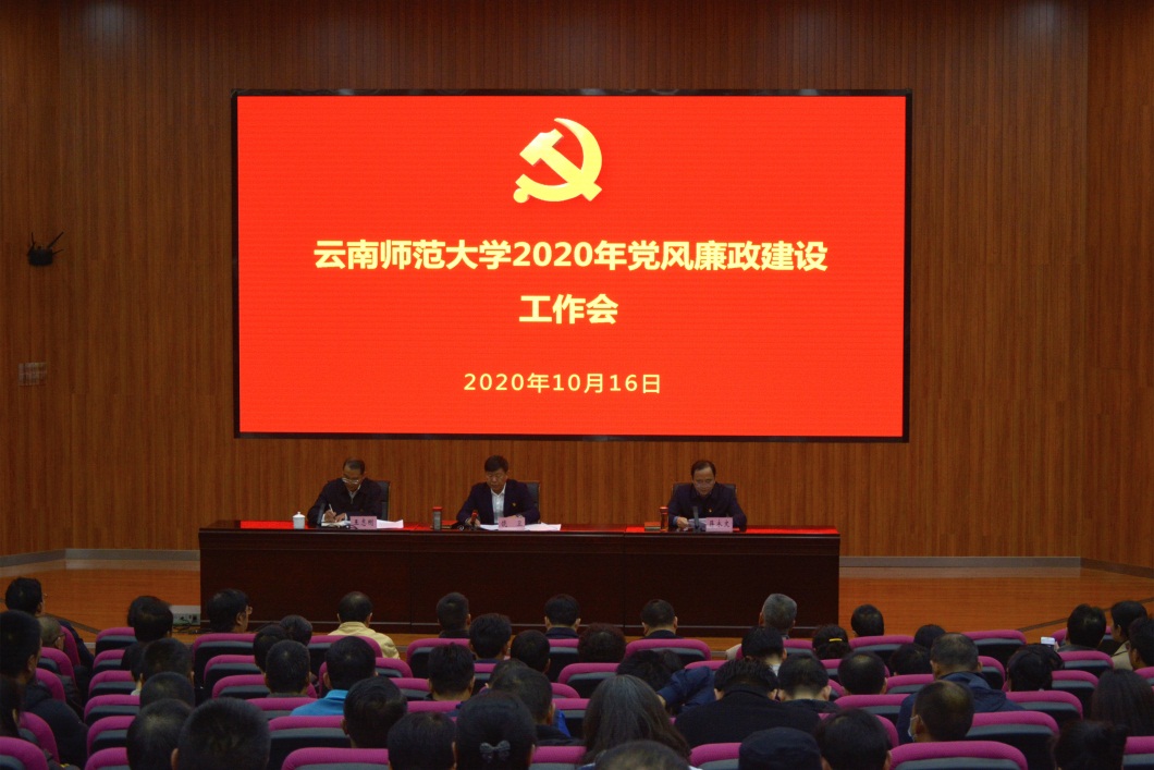 10月16日上午,我校在汇学楼二幢101报告厅召开365英国上市官网2020年党风廉政建设工作会。校党政领导班子成员和其他省管干部,校纪委委员,全体副处级及以上干部,各基层党委(总支)、直属党支部纪检委员,特约监督员,云南纪检监察学院师生代表等共400余人参加了会议。校党委书记饶卫出席会议并作讲话,校党委副书记、校长蒋永文主持会议,校党委委员、纪委书记王志刚做工作报告。