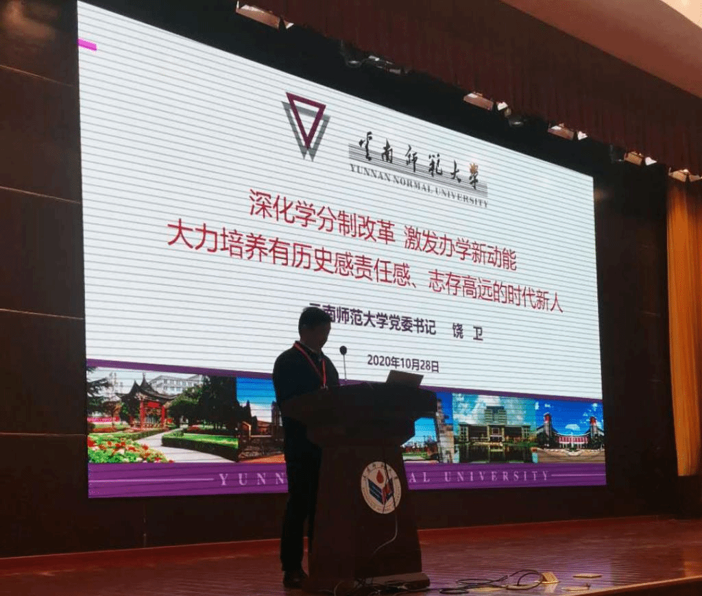 校党委书记饶卫受邀参加了山东师范大学建校70周年庆祝大会,代表学校对山东师范大学建校70年取得的办学成绩表示祝贺,就两校进一步深化交流合作,实现共同发展进行了交流。期间,饶书记出席了山东师范大学承办的“全国省部共建师范大学协作联盟2020年会暨新时代高等师范院校高质量发展论坛”,并以“深化学分制改革、激发办学新动能,大力培养有历史感责任感、志存高远的时代新人”为题在大会上作交流发言。