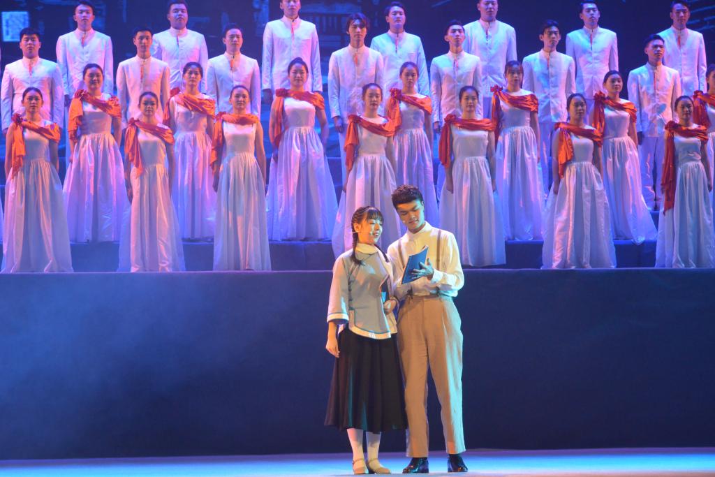 演出在西南联合大学校歌《满江红》中拉开了序幕,歌曲《南渡,南渡》由闻一多先生与女青年学生危急关头“为保留中华文脉准备南迁”的对话导入情景,演绎了三校师生历经艰难险阻,辗转南迁的感人故事;《联大花开》《停课赏雨》《跑警报》《泡茶馆》等情景接连上演,充满浓浓的人文情怀,再现了联大师生克服艰苦条件坚持治学研究,致力育才报国的场景;由西南联大诗人穆旦作词的歌曲《野人山》,重现了联大先辈舍生报国的家国情怀。现场还通过时空对话的方式,以歌曲《天降大任》《我长大,你不老》展现西南联大师生和衷共济,创造教育史不朽奇迹,整台演出迎来阵阵掌声。