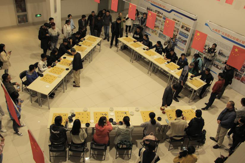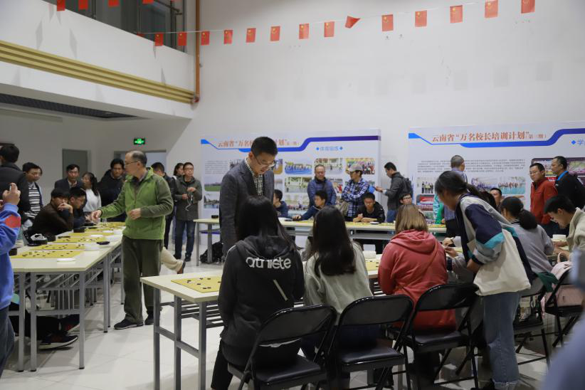 开班仪式结束后,与会嘉宾和围棋专家与现场学生进行棋艺交流。