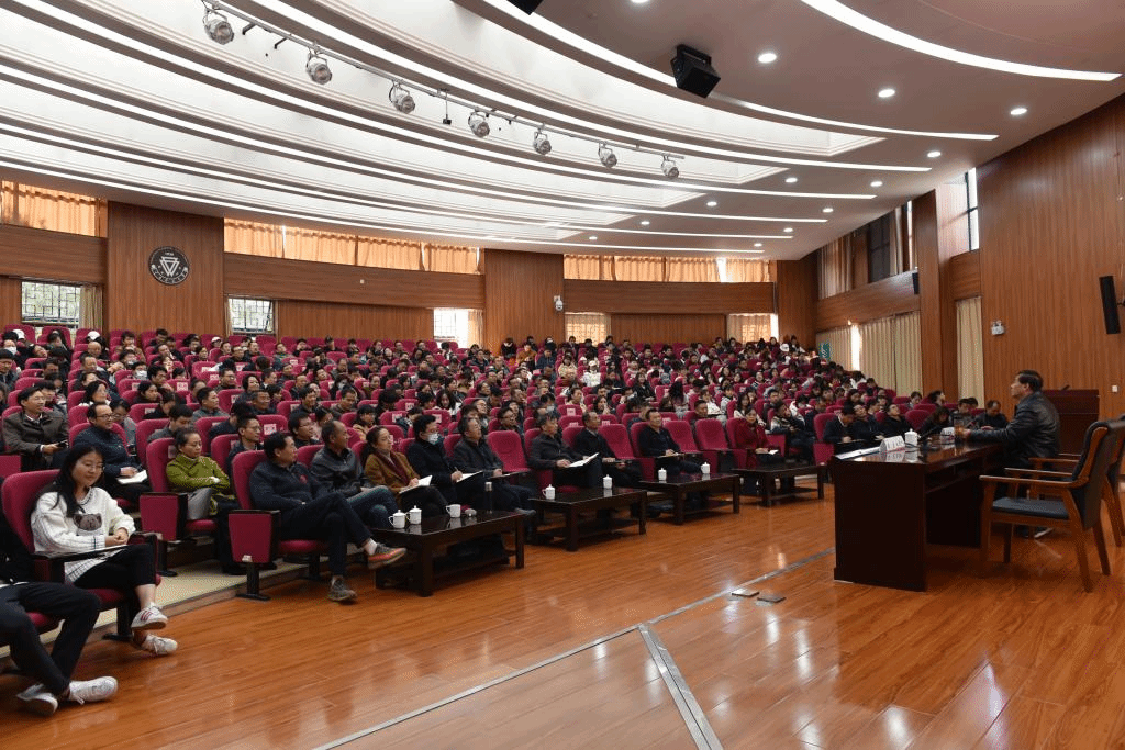 为认真学习宣传《习近平谈治国理政》第三卷,把学习宣传贯彻习近平新时代中国特色社会主义思想和习近平总书记考察云南重要讲话精神不断引向深入,引导师生读原著、学原文、悟原理,12月2日,我校于呈贡校区汇学二号楼报告厅举行《习近平谈治国理政》第三卷省委宣讲团宣讲会暨校(院)两级党委理论学习中心组(扩大)学习会。省委宣讲团成员、省委党校(云南行政学院)原副校(院)长欧黎明教授应邀作主题宣讲,宣讲会由校党委副书记李宏主持。全体校领导、全校副处级及以上领导干部、思政课教师、部分教师和学生代表参加了宣讲会。