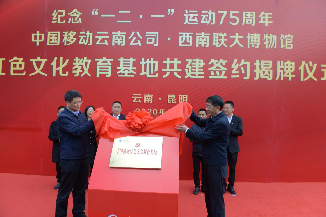 中国移动云南公司党委委员、副总经理、直属机关党委书记黄振旺,我校西南联大研究所副所长、西南联大博物馆党支部书记朱俊,分别代表双方签订“红色文化教育基地”共建协议。我校党委副书记张玮、中国移动云南公司总经理葛松海为“红色文化教育基地”揭牌。