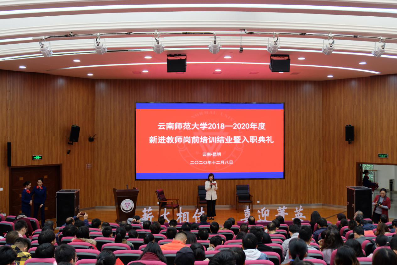 12月8日下午,学校2018-2020年新进教职工岗前培训结业暨入职典礼仪式在呈贡主校区汇学楼2幢报告厅顺利举行。校党委书记饶卫、校长蒋永文、校纪委书记王志刚、副校长安学斌、副校长郝淑美、云南华文学院党委书记和雪莲、相关单位主要负责人及新进教职工等260余人参加了典礼。
