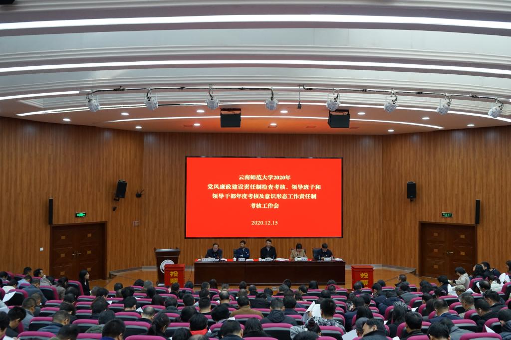 根据省纪委、省委组织部、省委宣传部的安排部署,12月15日,由省委教育工委副书记、省教育厅党组成员陈世波带队,云南中医药大学纪委书记李媛芬任党风廉政建设责任制检查考核组组长、云南民族大学党委副书记李光明任省管领导班子和领导干部年度考核组组长的省委教育工委第三检查考核组对我校2020年党风廉政建设责任制、领导班子和领导干部年度工作及意识形态工作责任制落实情况进行考核。学校在呈贡主校区汇学楼报告厅召开2020年度工作考核会,校领导班子成员、其他省管干部、近三年退休校领导、处级实职干部,专家学者和教职工代表参加会议。会议由校党委副书记、校长蒋永文主持。