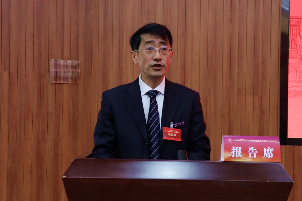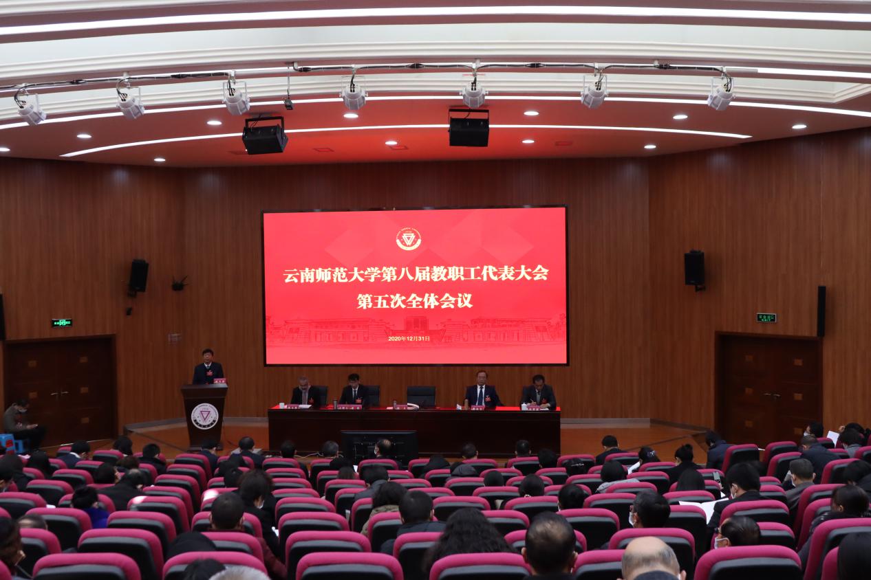 12月31日,365英国上市官网第八届教职工代表大会第五次全体会议在呈贡主校区汇学楼报告厅胜利召开。全体校领导、第八届教职工代表大会正式代表及列席代表170人参加会议。会议由校党委副书记、工会主席张玮主持。