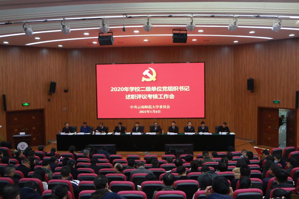 为进一步推进全面从严治党向纵深发展,提升学校党的建设质量,根据省委教育工委的部署和要求,1月6日,我校党委开展2020年度二级单位党组织书记抓基层党建述职评议考核。校党委委员,相关职能部门主要负责人,各单位党委、党总支、直属党支部书记、副书记,熟悉基层党建工作的党代会代表、人大代表、政协委员、党务干部、师生党员和群众代表等180余人参加了会议。会议由校党委书记饶卫主持。