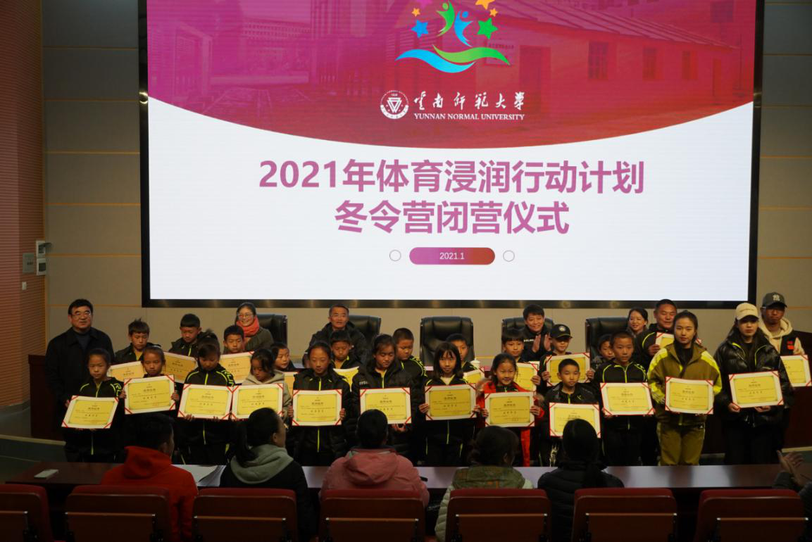 1月19日下午,教育部2021年体育浸润行动计划冬令营毕营仪式在我校西边中心报告厅顺利举行。我校副校长武友德,体育学院院长聂真新,副院长丁先琼、袁际学、袁凤梅以及体育学院任课教师、泸水市第一完全小学和独龙江乡九年一贯制学校的24名师生出席了毕营仪式。