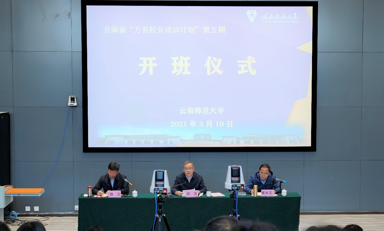 蒋永文校长在开班仪式上希望学员们珍惜这次为期4个多月的学习机会,把主要精力放在学习上,通过读书悟道、专家引道、研讨明道、实践证道,不断沉淀自我、升华自我,为云南教育的发展苦练内功、积蓄后劲,努力成为有责任、有情怀、有担当的优秀校长乃至教育家。