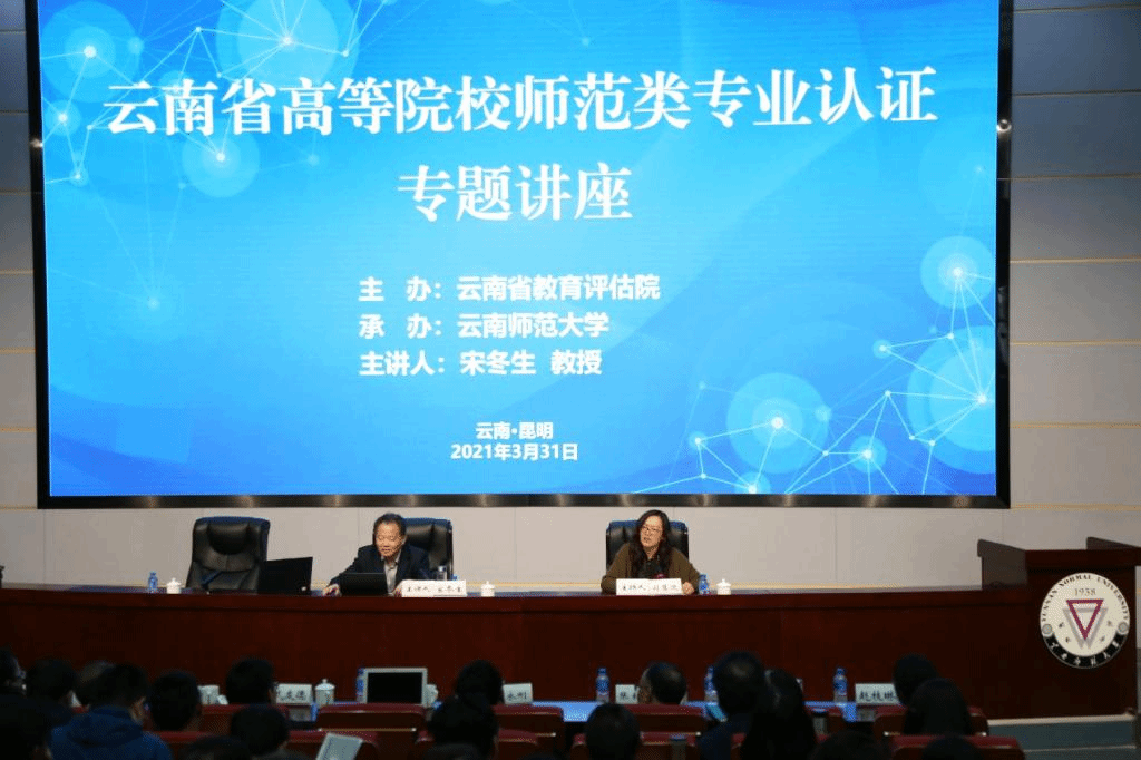 3月31日,由云南省教育评估院主办、我校承办的2021年云南省高等院校师范类专业认证专题讲座在呈贡校区中国西南对外开放与边疆安全研究中心报告厅举行。武友德副校长、云南省内20所本科高校分管校领导、教务处及评估部门负责人、学院及专业负责人等200余名代表参加讲座。此次讲座由教育部师范类专业认证专家委员会学术委员会宋冬生教授主讲,云南省教育评估院副院长司慧迎主持。
