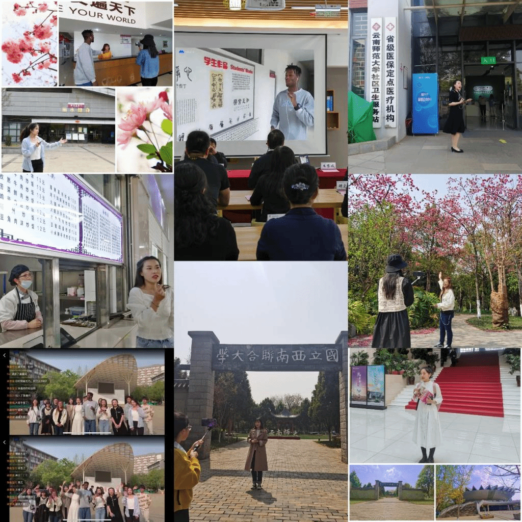 “云游师大”活动伊始,留学生拉希德“变身”主播带着大家一同前往观光学院办公室、教室、文化长廊等,学院老师们纷纷向留学生问好,希望大家可以早日返校。第二站,许嘉杰带领大家前往西南联大仿制门,感受云师大浓厚的历史韵味;第三站,李青云带领大家来到365英国上市官网一号门,讲述了大门的设计内涵;第四站,泰国留学生张美孝带大家参观了黑天鹅畅游的南湖、北潭;第五站,苏馨蕊带领大家畅游云师图书馆,了解图书馆丰富的馆藏文献;第六站,蒋丹用镜头带大家到食堂,感受特色美食“诱惑”。拉希德还带大家“云游”留学生宿舍,留学生们的思绪也仿佛回到往日校园生活。活动接近尾声,蒋丹、拉希德带领大家来到贝壳广场,采访了来往的中国学生。最后,主播们齐聚一堂,向留学生致以美好的问候,此次活动在大家对留学生返校的期待中圆满结束。