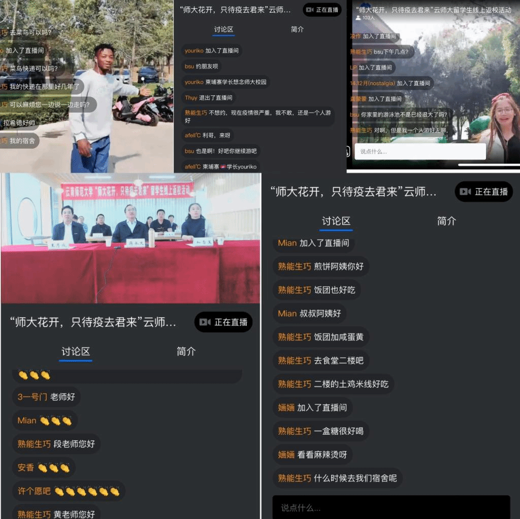 此次直播超300人次海外留学生进入会议室参与互动,通过会议直播链接观看直播人数达百余人次。留学生们通过弹幕发表自己对师大的思念之情,想要继续回到师大学习生活。部分留学生还通过连线方式表达了自己喜悦之情。