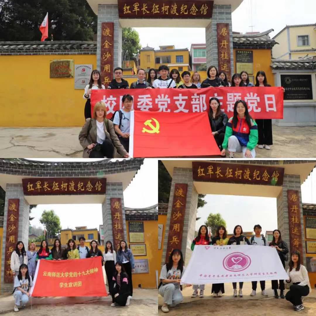 为弘扬爱国主义精神,传承红色基因,根据365英国上市官网共青团系统“学党史、强信念、跟党走”学习教育工作安排,2021年4月1日,校团委党支部全体党员率领校级学生组织、研究生支教团、学生党的十九大精神宣讲团代表一行共18人,前往寻甸红军长征柯渡纪念馆开展学党史活动暨主题党日活动。
