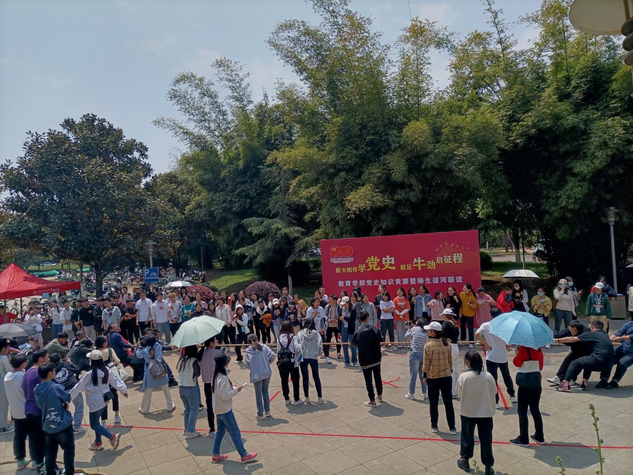 2021年是中国共产党建党100周年,为做好党史学习教育,增强师生的使命感、责任感,4月8日下午,教育学部在呈贡主校区明德4号楼前举行“薪火相传学党史 鼓足牛劲启征程”党史知识竞赛暨师生拔河联谊。教育学部党委委员、党政领导班子成员以及师生代表共计22支队伍500余人参加了此次活动。