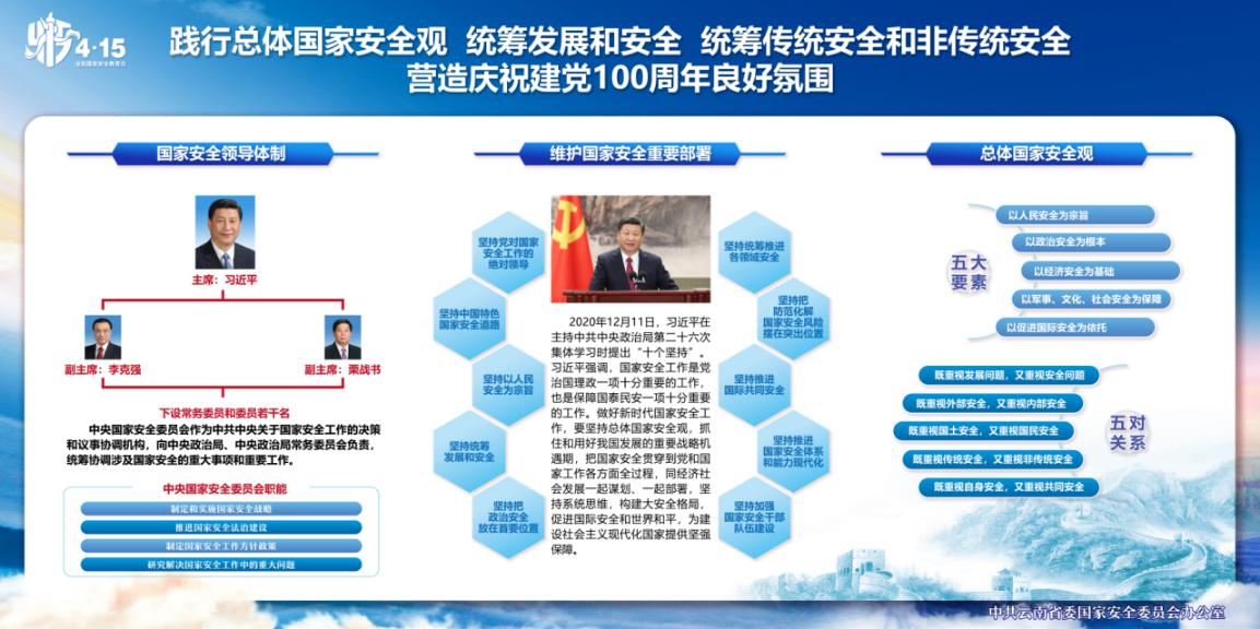 2015年第十二届全国人大常委会第十五次会议通过《中华人民共和国国家安全法》,将每年4月15日确定为全民国家安全教育日。2021年4月15日步入了第6个国家安全教育日。2021年全民国家安全教育日主题为“践行总体国家安全观,统筹发展和安全,统筹传统安全和非传统安全,营造庆祝建党100周年良好氛围。”我国维护国家安全要坚持国家安全一切为了人民、一切依靠人民,真正夯实国家安全的群众基础。只有国家安全得到维护,人民安全才有了保障,增强全民国家安全意识刻不容缓。
