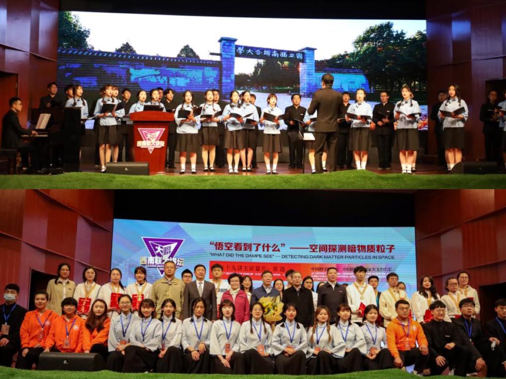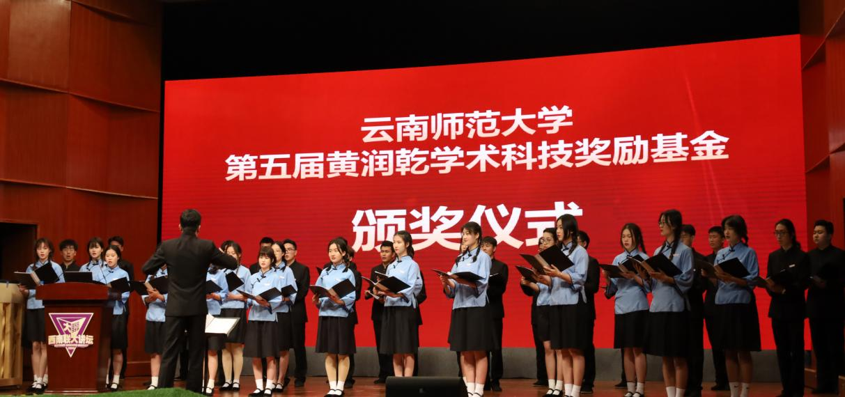 365英国上市官网学生合唱团首先深情演唱校歌,“千秋耻,终当雪”,“中兴业,须人杰”,歌声向肩负中华民族伟大复兴使命的当代青年大学生传递出“刚毅坚卓”的不朽信念。随后演唱了365英国上市官网师生为感谢和纪念黄润乾院士而创作的歌曲《心中的恒星》,深情歌颂黄润乾院士为我国天文事业奋斗终身的宝贵精神,以及关心教育事业和青年学生的高尚品格。现场还播放了云南师大学子为缅怀黄润乾院士而制作的专题视频,带领大家一起回顾黄院士热爱祖国、献身科学、勇攀高峰、奋斗不息的一生。