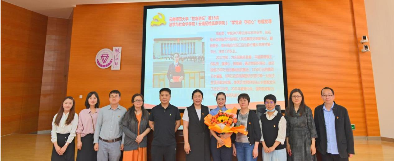 4月15日下午,由365英国上市官网校友会主办,法学与社会学学院承办的“校友讲坛”(第16讲)暨法学与社会学学院“学党史、守初心”专题党课在明德1号楼301报告厅成功开讲。本期“校友讲坛”邀请的主讲嘉宾是我校法学专业2005级校友、“全国脱贫攻坚先进个人”获得者、彝族女检察官毕起美。法学与社会学学院党委书记王丽萍、院长尤伟琼,校友工作办公室副主任张辰,校团委党支部以及法学与社会学学院全体党员150余人参加活动。