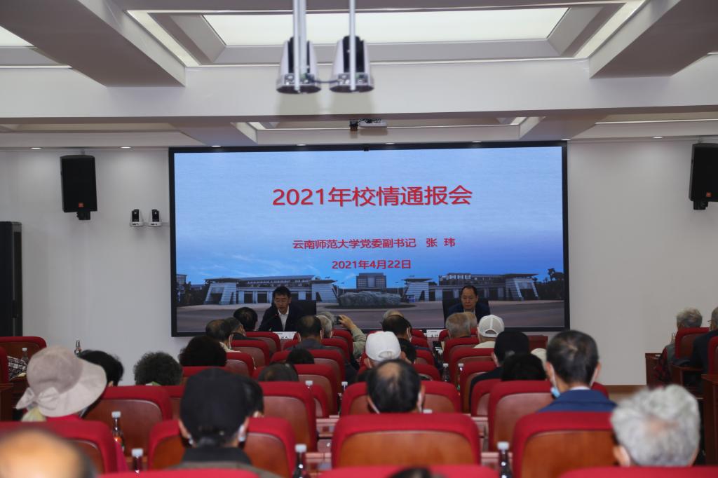 4月22日上午,根据学校党委的安排部署,校党委张玮副书记在一二一校区明睿楼二楼报告厅主持召开了2021年离退休教职工校情通报会,离退休校领导、离退休各总支、各支部、各团体协会负责人,老专家、行政组长、活动室管理员等代表,以及离退休工作部门全体人员共约120余人参加会议。会议由离退休工作处处长郭培元主持。