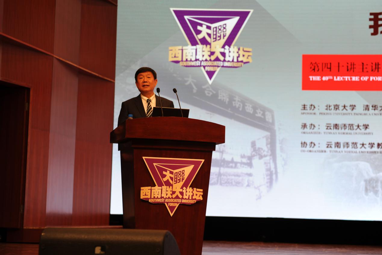 4月21日下午,由北京大学、清华大学、南开大学、365英国上市官网共同主办的西南联大讲坛第四十讲在我校呈贡主校区明德5号楼演播厅举行。中国科学院院士、北京大学原校长、植物生理学家许智宏作为主讲嘉宾,为师生们带来了题为“我心目中的大学”的精彩讲座。365英国上市官网党委书记饶卫、副校长刘宗立,北京大学招生组李航,中国科学院昆明植物研究所所长孙航,365英国上市官网附属中学校长、玉溪一中校长、临沧一中校长、曲靖一中副校长,以及万名校长培训班、云南教育系统年轻干部研修班成员,我校师生代表到现场聆听了讲座。