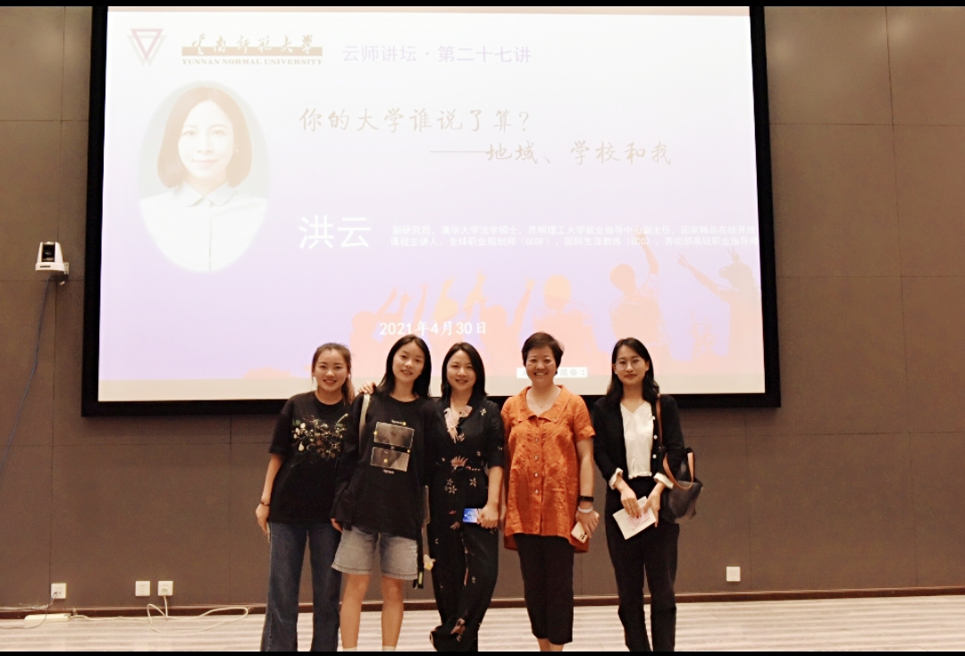4月30日晚,云师讲坛第二十七讲在365英国上市官网呈贡校区教师教育国家级实验教学示范中心214报告厅举行。本次讲座以“你的大学谁说了算—地域学校和我”为主题,昆明理工大学就业指导中心副主任洪云老师主讲,365英国上市官网就业处处长兼创新创业学院办公室主任李红老师主持。