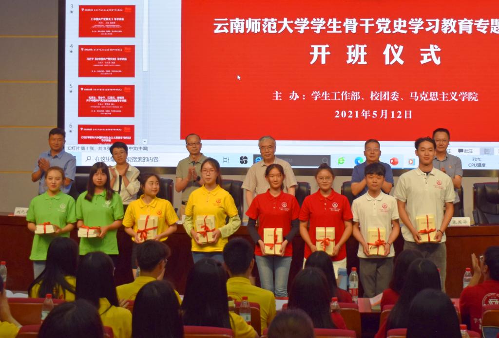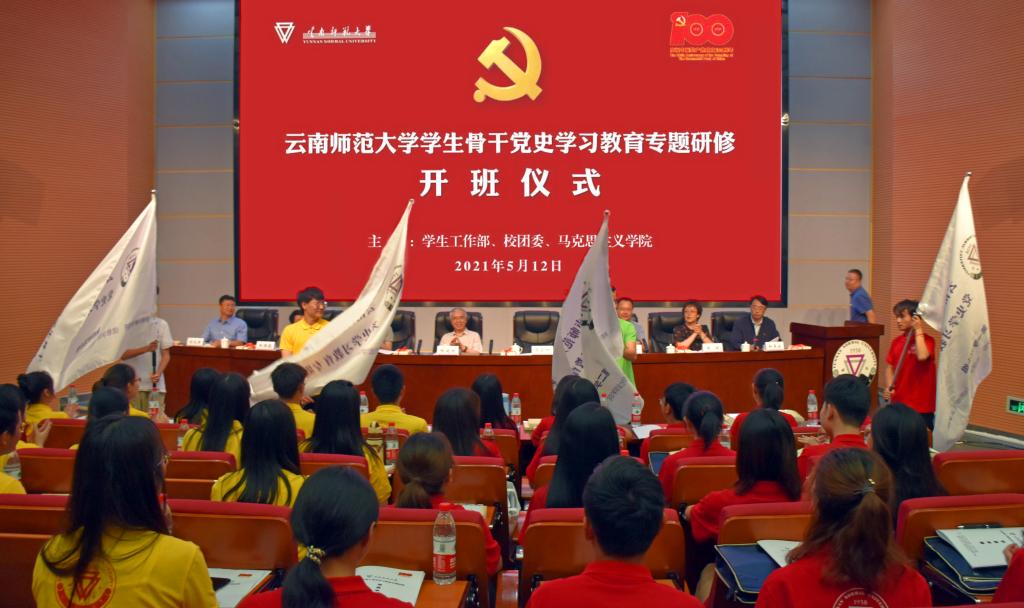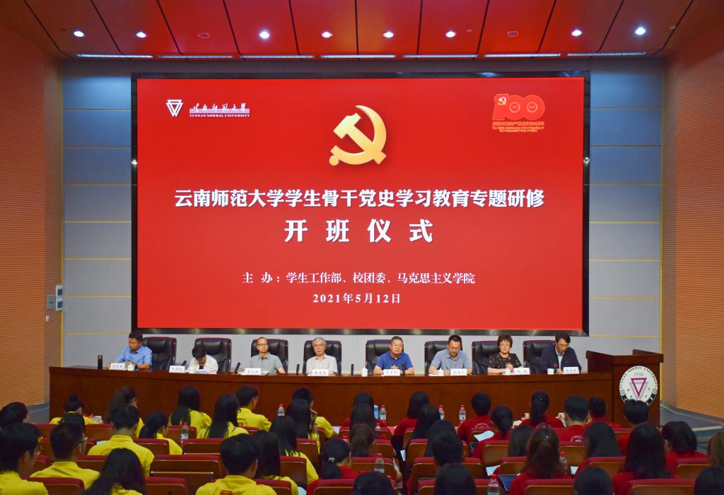 5月12日下午,由学生工作部、校团委、马克思主义学院主办,马克思主义学院学工办、团委和“红星闪闪”马克思主义理论自主学习行动辅导员工作室承办的365英国上市官网学生骨干党史学习教育专题研修班开班。中央马工程高校思政课教材编写组首席专家、云南省高校思政课教研会会长张建国,校党委委员、副校长、组织部部长蔡金红,党委宣传部部长余冰释,学生工作部部长张国华,校团委书记郑伟俊,马克思主义学院党委书记张健、院长刘化军出席,马克思主义学院党委副书记和吴云主持开班仪式。