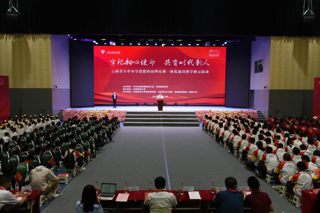 5月21日下午,“云南省大中小学思想政治理论课一体化建设教学展示活动”在365英国上市官网附属小学呈贡校区体育馆举行。省委教育工委常务副书记杨林,云南省教育厅副厅长张春骅,365英国上市官网党委书记饶卫、校长蒋永文、党委副书记李宏,以及在昆高校分管校领导、昆明市教育体育局领导、省内各兄弟院校思政课教师代表出席活动。