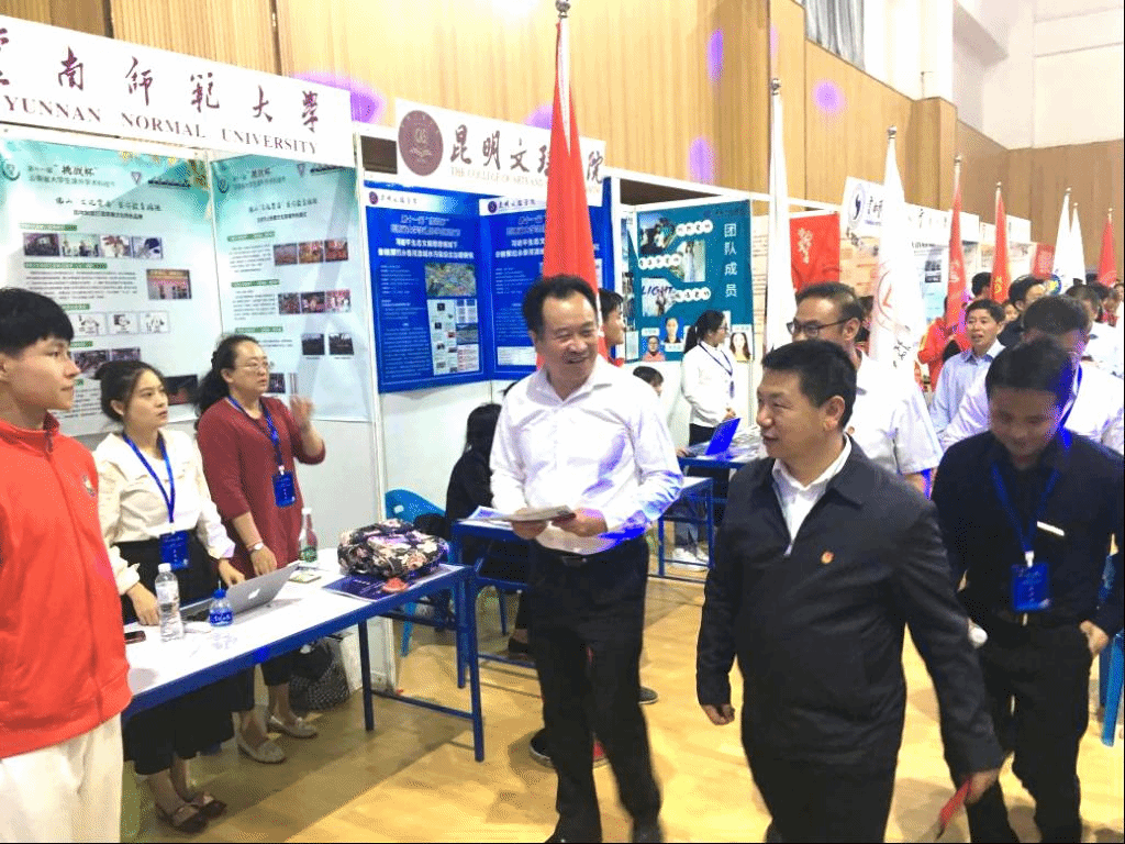 5月14日晚,第十一届“挑战杯”云南省大学生课外学术科技节终审决赛开幕式在云南中医药大学刚毅馆举行,团省委副书记赵攀峰同志代表主办单位致辞。开幕式前,出席活动的领导、嘉宾、评审专家等前往巡展现场,观看了参赛作品并与参赛选手们交流。