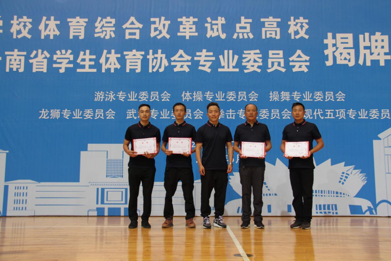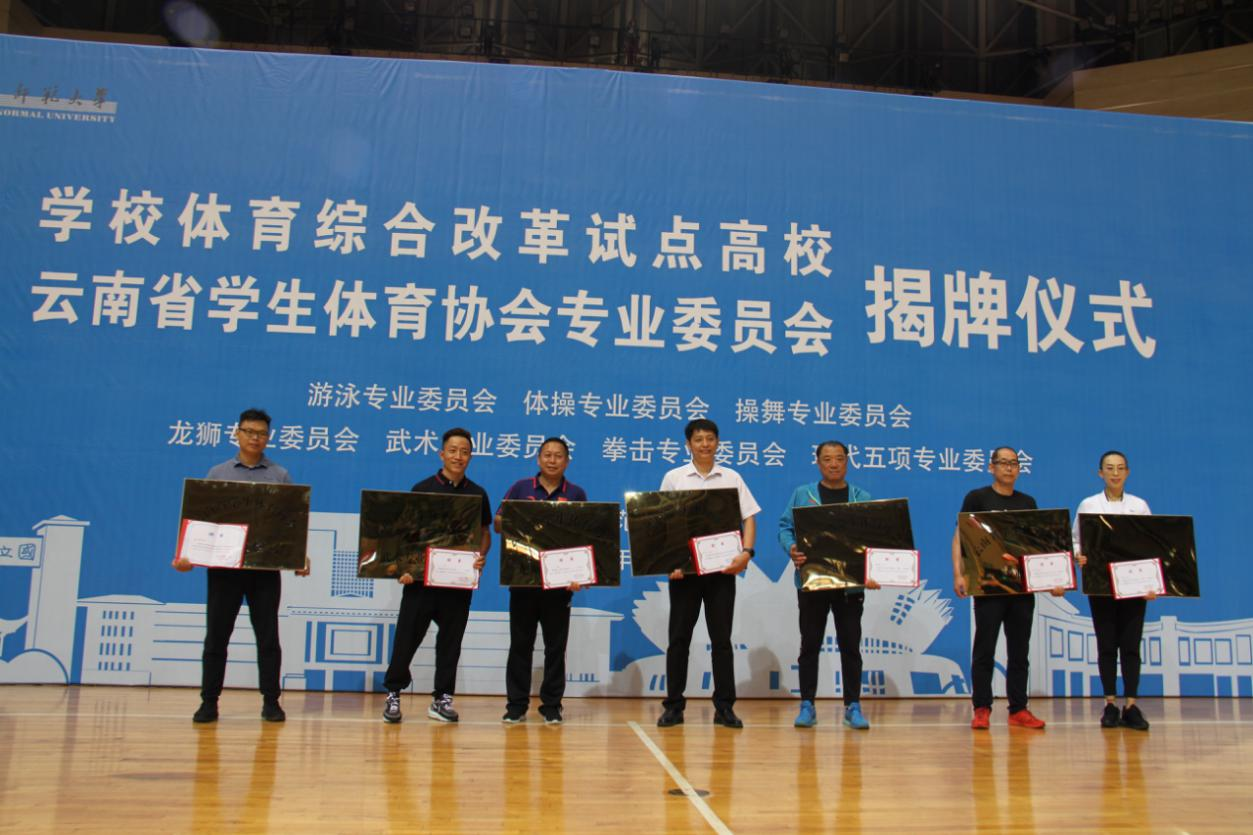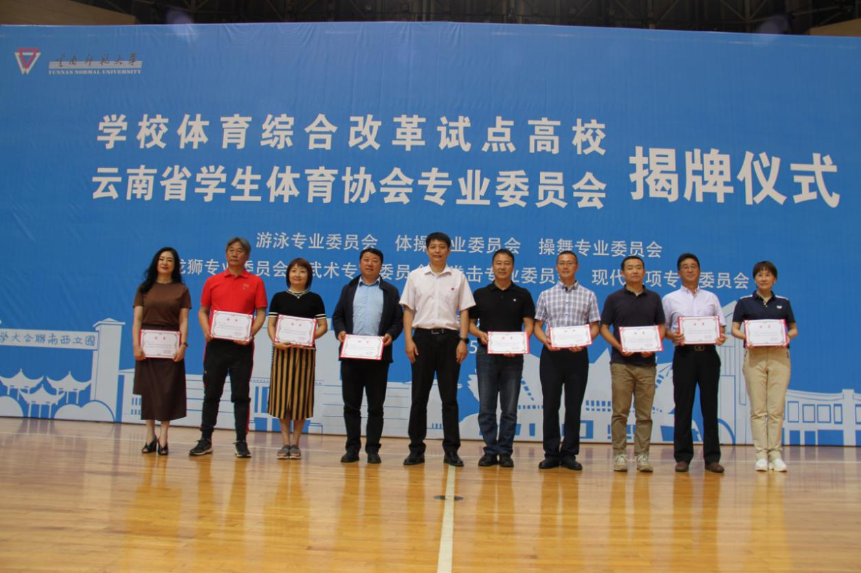云南省教育厅体卫艺处处长徐忠祥同志宣读了云南省第一批学校体育综合改革试点高校名单并授牌。各专委员会主任为副主任颁发聘书。