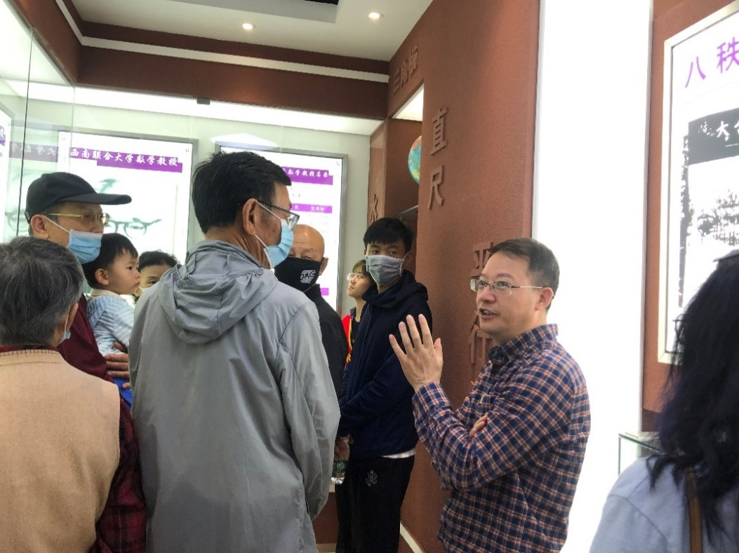 5月26日上午,毓和社区党支部20余名党员同志及家属前来参观。参观过程中,一名老党员同志感叹时代发展迅速,数学学院的发展更是令人欣喜。当日下午,云南省科学技术厅情报研究院武卫书记一行莅临指导,并参与到数学科普益智游戏中,感受数学文化的魅力。