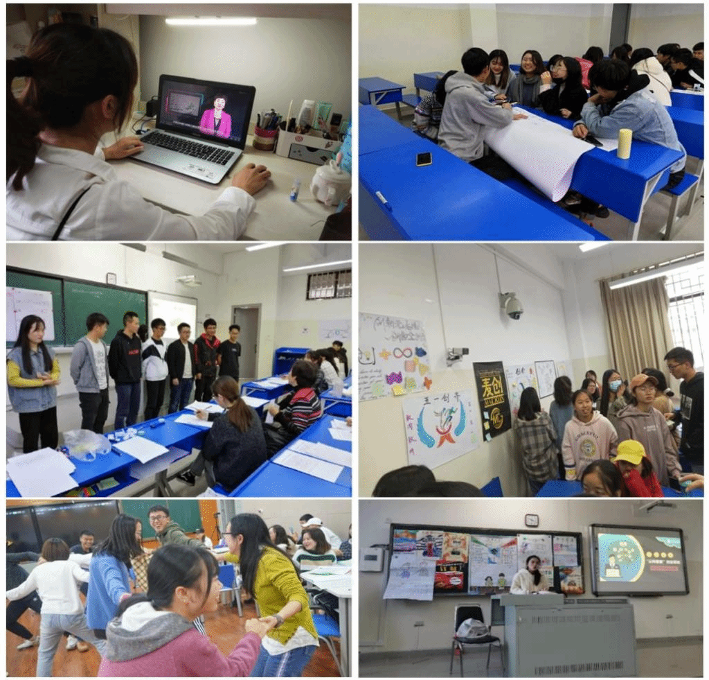 课程自2018 年11月上线运行后, 我校《创新创业教育与实践》(理论)课程全面实施混合教学模式改革,所有开课班级均采取线上线下相结合的教学模式。截止目前,已在校内运行6学期,共325个班级、18786名同学参与课程学习。《创新创业教育与实践》(理论)课程基于《“玩”创未来》创业基础理论、“创践六步法”、以及百森教学法的理论与实践研究,不仅仅探讨创业本身,更将“广义创业”,即创造人生事业为教学核心切入点。为打造以学生为中心的课堂,教学中大量采用小组讨论、项目驱动、头脑风暴、探究教学、体验式教学等互动教学方法,例如寻人游戏、吐槽大会、竞猜、融资大会等互动活动的实施,营造了融洽的课堂氛围,并有效调动了学生学习积极性。教学团队积极推进课程教学改革,课程的混合教学模式获云南省高等学校本科教育教学改革研究项目、校级线上线下混合式一流课程立项,并被认定为云南省首批线上线下混合式一流课程。