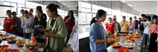 本次比赛的创作内容围绕庆祝建党100周年、节约粮食、珍惜劳动成果展开,创作要求为节约、创新、美观、有意义,同学们利用水果刀、牙签等工具雕刻、摆盘,创造出造型多样、寓意丰富的水果拼盘作品。比赛共评选出一等奖1组,二等奖2组,三等奖4组。