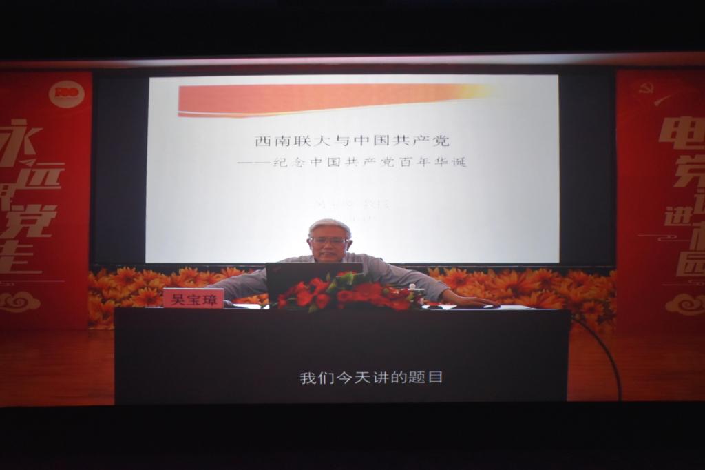 观影结束后,师生党员们聆听了我校吴宝璋教授带来的题为《西南联大与中国共产党——纪念中国共产党百年华诞》专题党课。