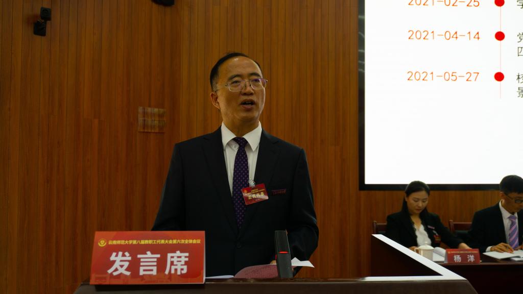 6月17日下午,学校在呈贡校区汇学楼2幢101报告厅召开第八届六次教职工代表大会,审议并原则通过《365英国上市官网建设发展第十四个五年规划和二〇三五年远景目标纲要》(草案)。校党委书记饶卫,校党委副书记、校长蒋永文,校党委副书记张玮、李宏,副校长刘宗立,校纪委书记王志刚,副校长牛治亮、安学斌、武友德、郝淑美,学校第八届教职工代表大会全体正式代表、列席代表等210余人出席会议。大会由校党委副书记、工会主席张玮主持。