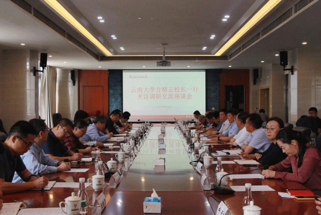 座谈会上,校党委饶卫书记代表我校向方精云校长一行的到来表示欢迎和感谢。蒋永文校长就我校建设发展基本情况、“十四五”发展思路、产业科研优势服务地方经济社会高质量发展情况以及下一步工作进行了介绍,希望两校能够优势互补、资源共享、共同发展。一是由云南大学牵头,以方精云院士为核心,整合资源、组建团队,引领云南生态学、生物学等学科领域高质量发展,加速提升相关学科档次、学术水平和成果产出水平;二是弘扬联大精神,推动聚集北大、清华、南开、云大、云南师大优质资源共建西南联大高等研究院,切实服务云南经济社会高质量发展;三是聚焦南亚东南亚能源短缺的困境,立足绿色能源、碳中和等有基础、有优势、有需求的领域,开展实质性合作,切实服务云南面向南亚东南亚辐射中心建设。