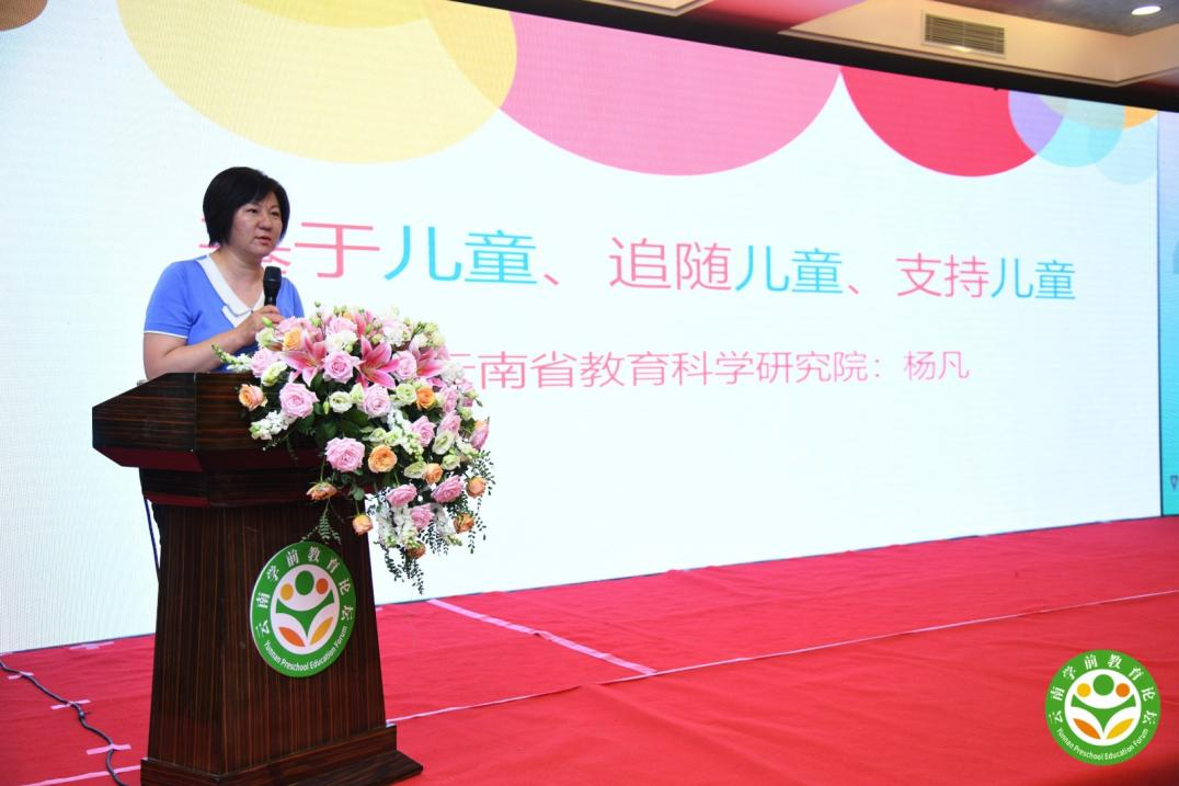 云南省教育科学研究院学前教研员杨凡老师以《基于儿童、追随儿童、支持儿童》的主题从“幼儿教师在课程改革中面临的挑战”和“当前教研工作的转变”两个方面进行分享。杨老师指出,在面对挑战、持续学习的过程中,我们应当遵循基于儿童设计课程、追随儿童实施课程、支持儿童学习发展。