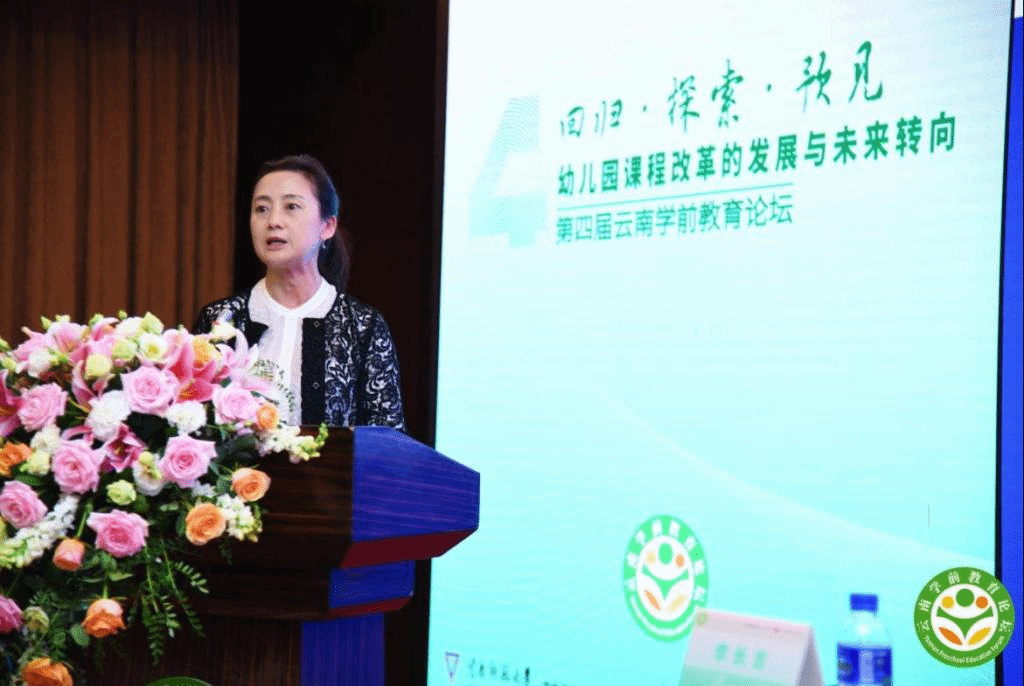 四川师范大学教育科学学院学前教育专业系主任彭俊英教授进行了关于《从关注学科到关注儿童经验》的分享,彭教授结合大量课程案例,从课程政策的发展历程,指出我国幼儿园课程设计的发展趋势。她表示幼儿园课程设计要从关注学科转向关注儿童经验,以儿童的现有经验为起点,向系统的经验推进。
