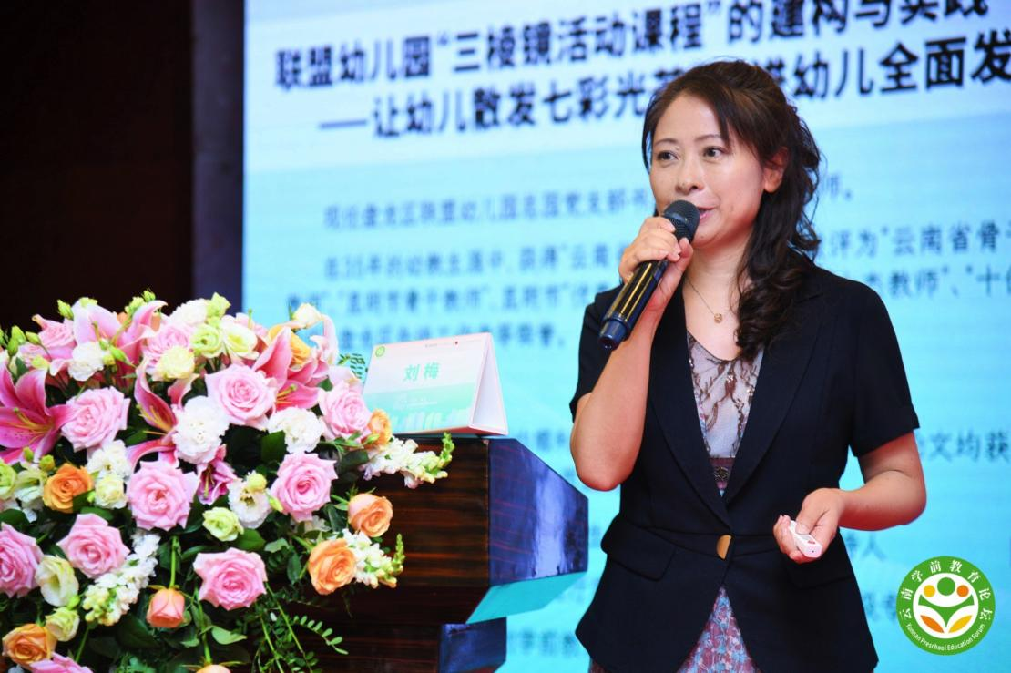 昆明市盘龙区联盟幼儿园总园党支部书记、园长刘梅进行了关于《“三棱镜活动课程”的建构与实践——让幼儿散发七彩光芒、促进幼儿园全面发展》的专题分享,刘梅园长结合视频,分享了“三棱镜活动”的课程探索和实践,就如何促进教师的专业化成长,加强教师队伍建设,让幼儿园质量有所提升,培养出“有个性、懂情趣、能学习”的孩子展开讨论。