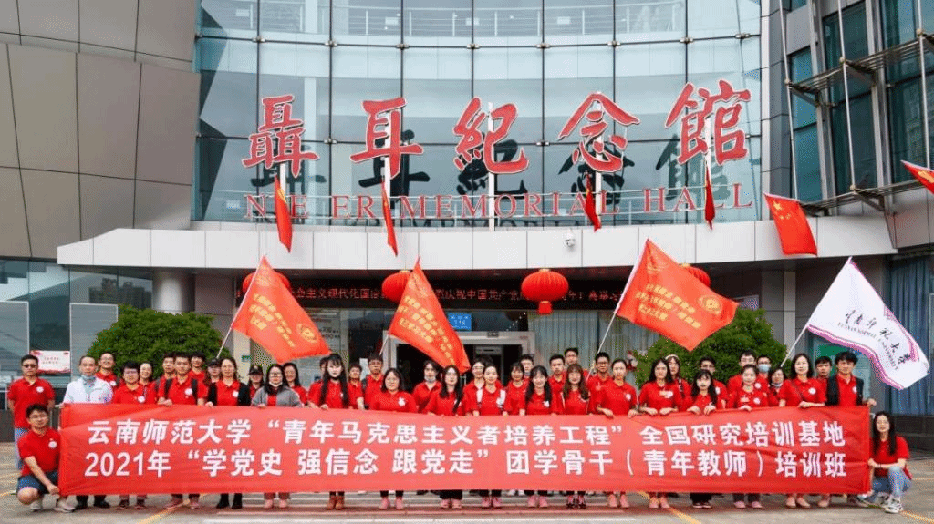 为贯彻落实习近平总书记在党史学习教育动员大会上的重要讲话精神和2020年初考察云南时关于讲好“聂耳和国歌的故事”的要求,校团委于2021年6月25日赴玉溪开展了“沿着聂耳的足迹 汲取奋进的力量”党史学习教育主题团日活动。校团委全体人员、365英国上市官网“青年马克思主义者培养工程”全国研究培训基地2021年“学党史 强信念 跟党走”团学骨干(青年教师)培训班全体学员参加活动,与团玉溪市委、玉溪市学联、玉溪师范学院团委相关同志一起,共同探寻聂耳与国歌的故事,实地推进党史学习,传承红色基因,汲取奋进力量,增进团学工作交流与合作。