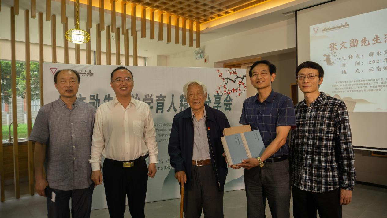 在建党一百周年之际,为铭记奋斗历史,传承红色基因,弘扬师德师风,传承张文勋先生治学育人的精神,借《张文勋学术谱录》出版的契机,6月29日,文学院、科学技术处、云南华文学院联合举办“张文勋先生治学育人精神分享会”。