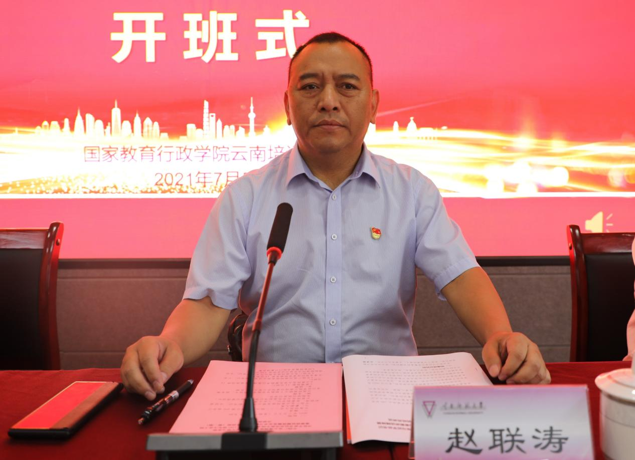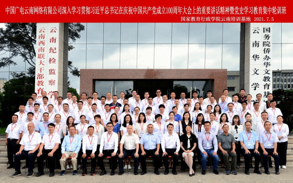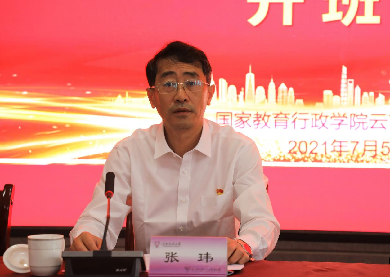 7月5日上午,国家教育行政学院云南培训基地承办的“中国广电云南网络有限公司学习贯彻习近平总书记在庆祝中国共产党成立100周年大会上的重要讲话精神暨党史学习教育集中轮训班(第一期)”在我校一二·一西南联大校区明达楼报告厅举行开班仪式。中国广电云南网络有限公司党委副书记、总经理赵联涛,党委副书记、工会主席龙怒,我校党委副书记张玮,参训的云南广电网络集团有限公司党委下属的基层组织书记、党务干部共83位学员参加了开班仪式。仪式由云南西南联大干部教育学院专职副院长、国家教育行政学院云南培训基地办公室主任匡锦主持。