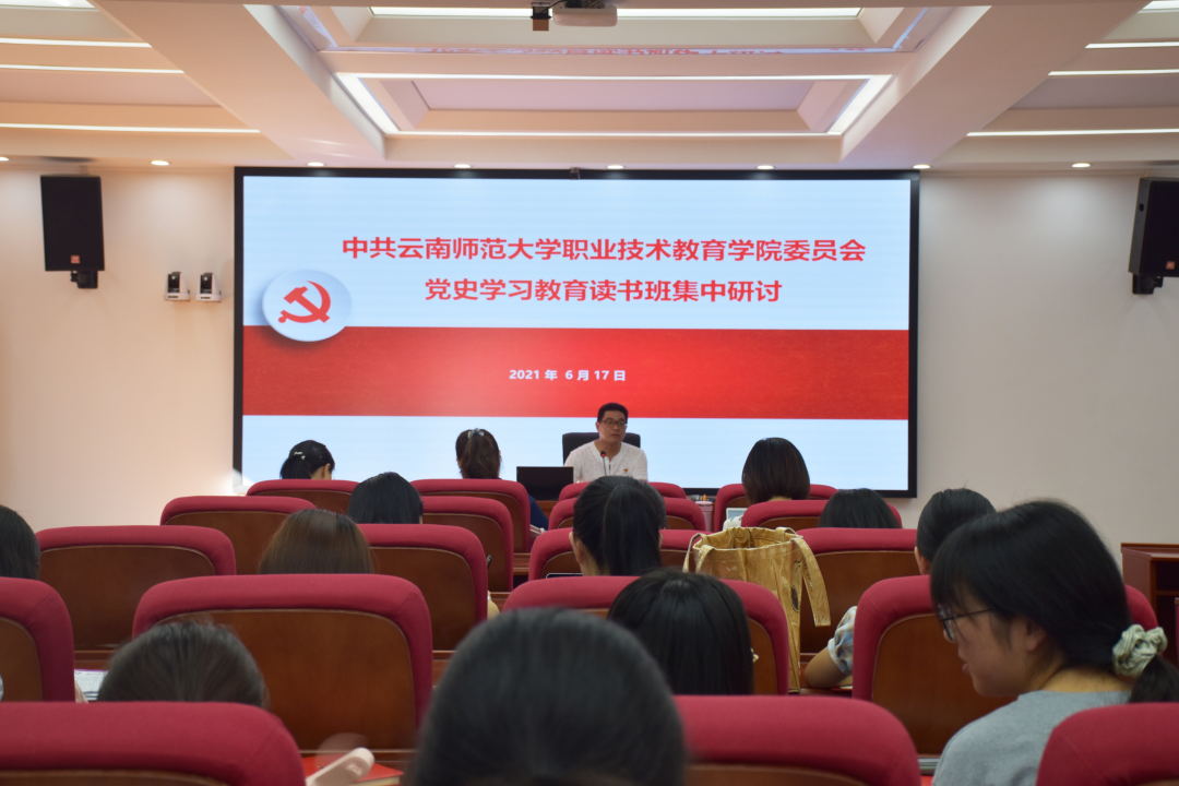 6月10日至30日,职业技术教育学院在一二一西南联大校区举办党史学习教育读书班分享会(第一期),深入学习习近平总书记关于党史学习教育的重要论述,聚焦学史明理、学史增信、学史崇德、学史力行,重温党的百年光辉历程,在学习领悟中坚定理想信念,在奋发有为中践行初心使命。期间一共举行了4场专题读书分享会,全院师生党员积极走上讲台,以多种形式分享自己的党史学习心得。
