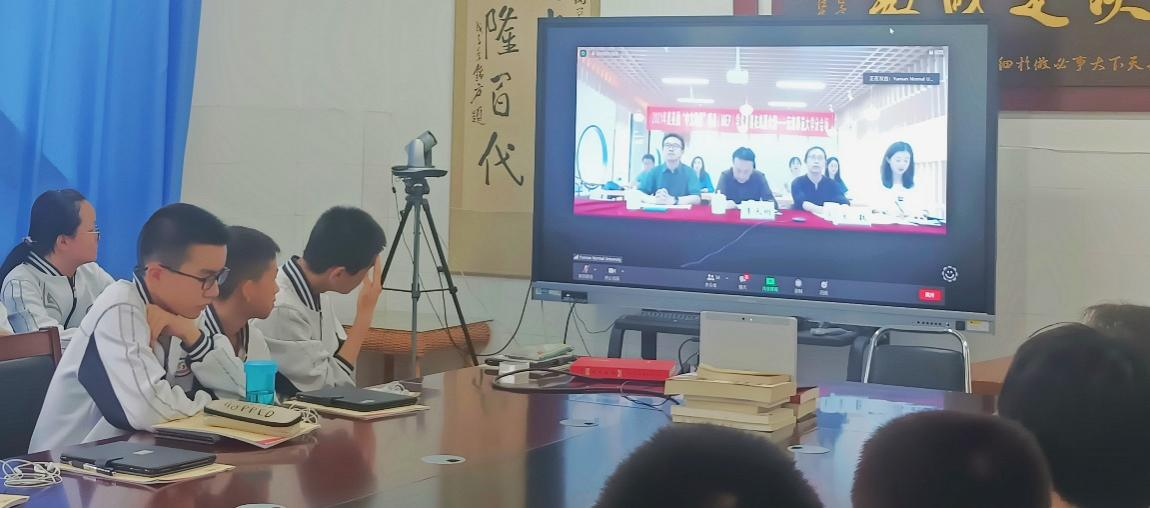 开幕式第一阶段结束之后,国际汉语教育学院开通直播分会场,举办了开幕式第二阶段的开班典礼。学院李天明副院长,常数副书记,夏令营主讲教师、助教,汉语国际推广师资培训基地(昆明)工作人员以及来自昆明市五华区云铜中学的校领导和承担语伴任务的中学生等51人参加,通过网络和参与此次项目的4所英国中学91名中学生及校方代表见面,开班典礼由汉语国际推广师资培训基地(昆明)办公室主任戴思远老师主持。
