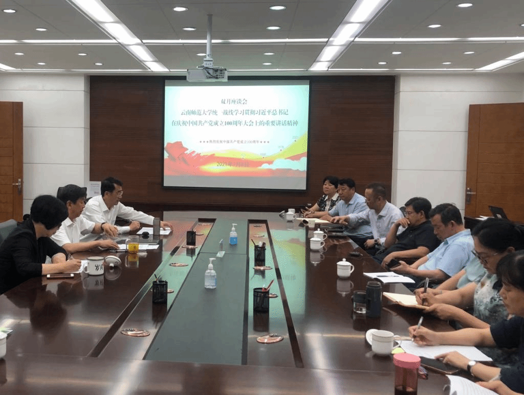 7月8日上午,我校召开统一战线2021年第三次“双月座谈会”,学习贯彻习近平总书记在庆祝中国共产党成立100周年大会上的重要讲话精神。校党委书记饶卫、副书记张玮及各民主党派、统战团体代表人士参加会议。会议由统战部部长龙梅主持。
