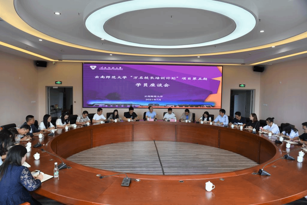 7月9日上午,蒋永文校长、武友德副校长、相关职能部门负责人一行到国家教师教育教学实验中心调研云南省“万名校长培训计划”第五期培训情况。蒋校长一行首先到教室了解了各班学员晨读的情况,随后与各班学员代表进行了座谈交流,会议由万名校长培训计划项目办公室林卫东主任主持。