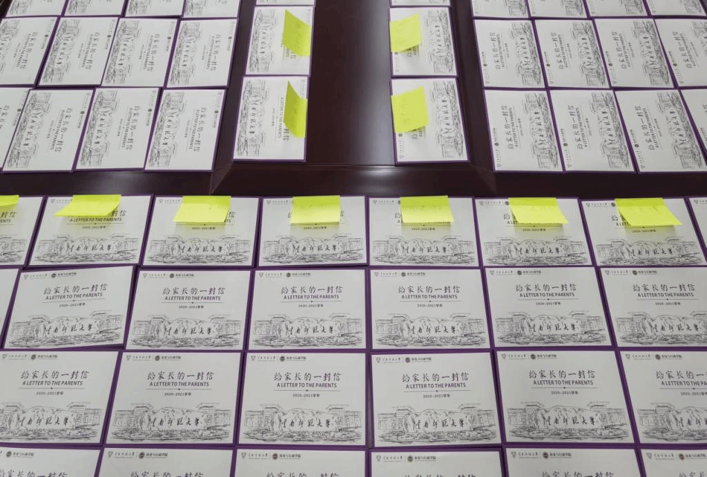 学院15位班主任老师亲自为945名学生一一撰写信件,向家长详细报告了学生2020-2021学年在思想、学习、生活上的表现,既告知家长孩子们在校的获奖及表彰情况,也指出孩子们还需进步的地方,同时主动了解学生家庭基本情况暑期生活学习情况疫情防控常态化提出相关要求,听取家长对学院发展和学生工作的意见和建议学院为每封信件精心设计了信封统一寄出。同时,学院也为2021级新生设计制作了“致2021级新生及家长们的一封信”,将随录取通知书一并寄给新生。一封封温馨的信笺,一句句真挚的问候即将通过“绿色信鸽”飞向每一个学生父母。相信来自学院和班主任充满真诚和爱意的信件,拉近学生、家长、老师之间的距离,交流变得更有温度,形成学院老师与家长良好的沟通渠道。