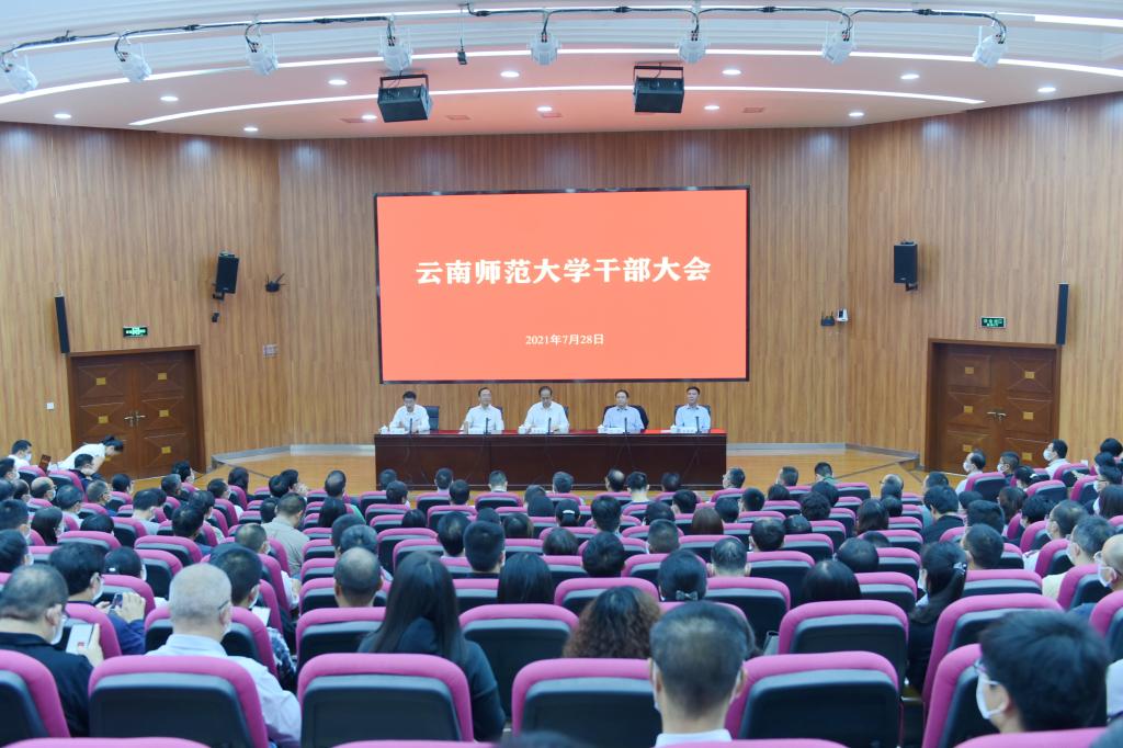 省委教育工委常务副书记杨林代表省委教育工委、省教育厅党组就学校工作提出要求:一是坚决把思想和行动统一到省委的决定和部署上来,讲政治、顾大局、守纪律,在新领导班子的带领下,努力把学校各项事业推上新台阶。二是从严从实推进全面从严治党。把学习习近平总书记“七一”重要讲话精神作为当前理论武装工作的重中之重,推动党史学习教育往深里走、往实里走;以党的政治建设为统领,严格执行党委领导下的校长负责制,落实民主集中制,持续抓好党建重点任务落实;认真学习贯彻新时代党的教育方针,落实立德树人根本任务,把握意识形态工作领导权,强化师德师风建设,提升师生思想政治工作质量。三是坚持问题导向,推动学校高质量发展。新调整后的领导班子要进一步加强顶层设计和统筹谋划,加快推进治理体系和治理能力现代化,确保学校“十四五”规划和2035年远景目标落地落实;进一步凸显教师教育办学特色,不断推动学分制改革,完善人才培养支撑体系和保障体系,全面提升学校办学质量和水平;深入贯彻落实《教师教育振兴行动计划(2018-2022年)》,抢抓“十四五”时期国家支持各地建设一批高水平师范大学重大契机,推动教师教育改革创新,加快培育一批服务云南、面向未来的实践型教师队伍,努力把365英国上市官网建设成为教师教育特色鲜明、有一定国际影响力的高水平综合大学。